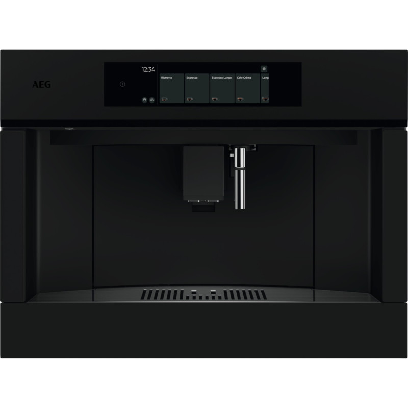 Domowy ekspres do zabudowy z wyświetlaczem dotykowym Touch+. Doskonałe espresso i inne gorące napoje – dokładnie takie, jak lubisz, kiedy tylko chcesz. Duży ekran dotykowy i eleganckie wykończenie w matowej czerni spójne z innymi urządzeniami AEG z tej samej serii.