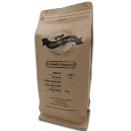 Columbia Supremo 100% Arabica to kawa mocno palona. Kawa posiada spójny i delikatny aromat, jest on zrównoważony o delikatnej słodyczy czekolady z nutą orzechową. Dzięki niskiej kwasowości nadaje się do częstego spożywania. Jest smakowo zrównoważona, nie czuje się ani kwasowości jak i gorzkości. Kawa ma wyczuwalny smak ciemnej czekolady.