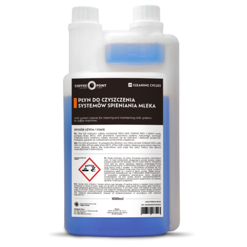 Coffee Point płyn do czyszczenia systemów spieniania mleka to profesjonalny środek czystości, który został dobrany z myślą o profesjonalnych ekspresach do kawy, bazując na badaniach laboratoryjnych, które wykonano w Niemczech. W wyniku procesu weryfikacji poszczególnych grup profesjonalnych ekspresów dobraliśmy środki, które są bezpieczne, ale równocześnie skuteczne. Właśnie dlatego seria profesjonalnych środków do konserwacji Coffee Point jest idealnie dopasowana do ekspresów profesjonalnych ale i też swietnie poradzi sobie z utrzymaniem w czystości ekspresów domowych.